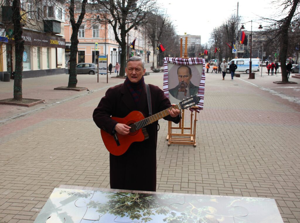 Також на Проскурівській влаштували тематичний флешмоб до Дня народження Тараса Григоровича. Хлопці та дівчата складали пазли з картини Тараса Шевченка «Катерина». Таким чином, хмельничани представили Шевченка не тільки як поета, а й як художника, який створював неповторні картини.